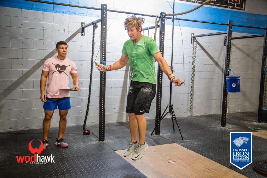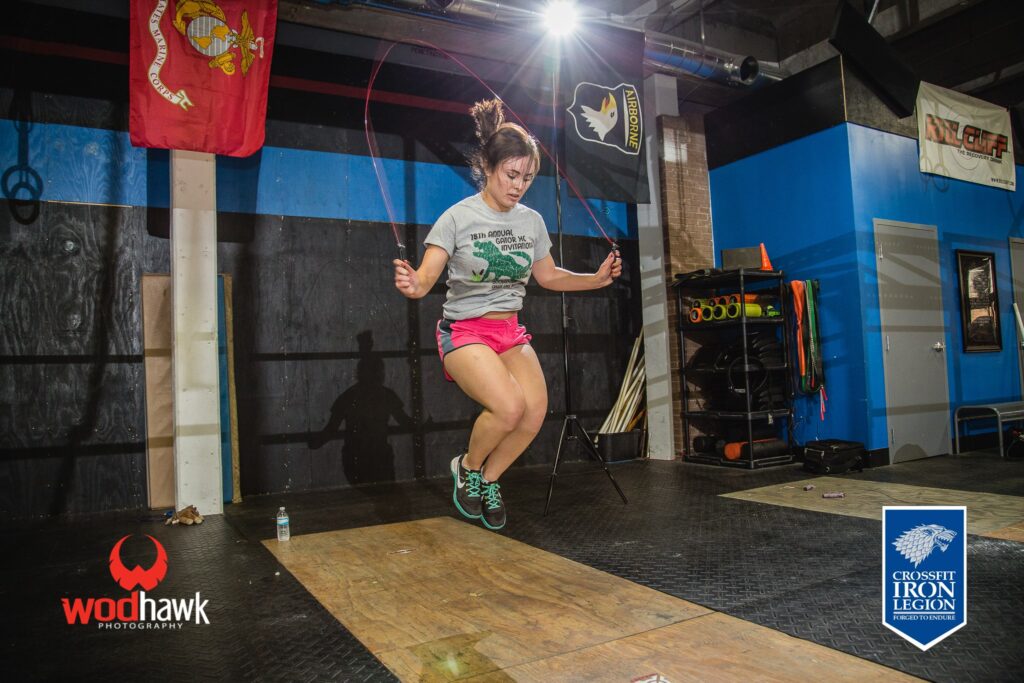 :10 ON/:20 OFF L-Sit hold Max Rep Double-Unders (single under reps cut in 1/2)